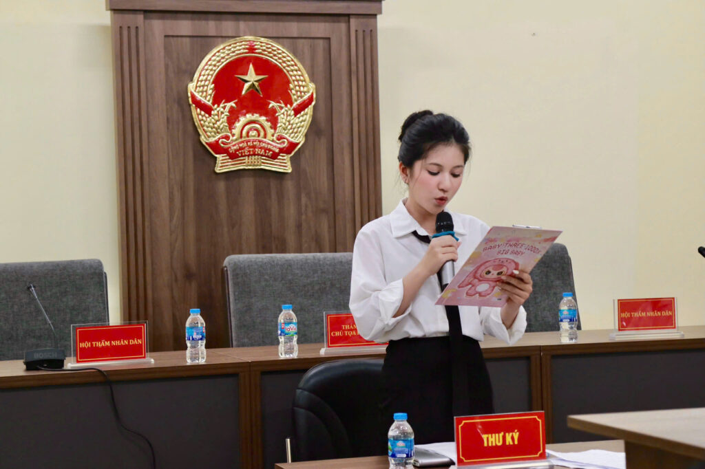 Khép lại chương trình, bà Lương Thị Hồng Nhung đã cùng Ban giám khảo trực tiếp trao giải cho các đội thi xuất sắc, đồng thời vinh danh những cá nhân nổi bật với danh hiệu “Diễn viên ấn tượng nhất” và “Diễn viên triển vọng”. Những phần thưởng không chỉ ghi nhận nỗ lực, mà còn mở ra thêm động lực để sinh viên tiếp tục theo đuổi con đường nghề luật một cách nghiêm túc và bền bỉ.